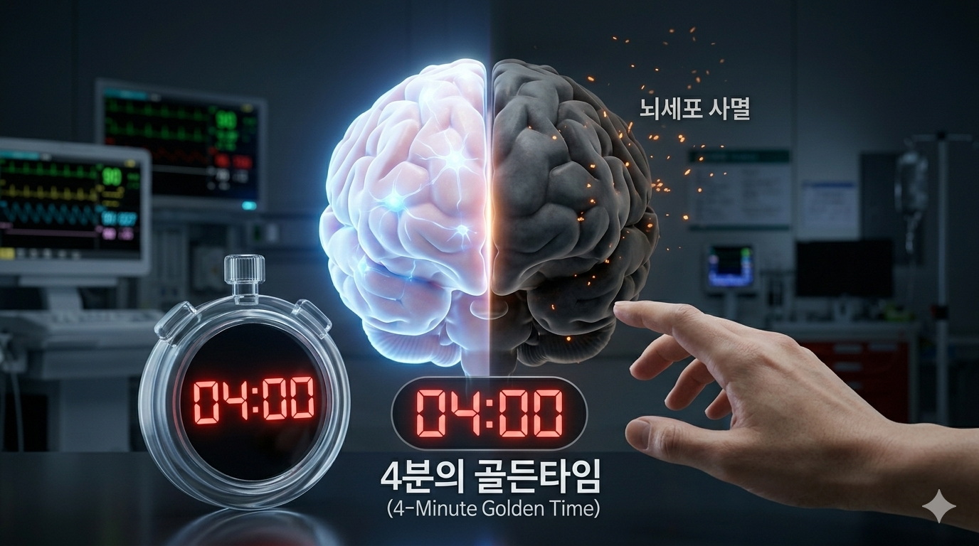 우리가 흔히 말하는 '골든타임(Golden Time)'은 단순한 수치가 아니라, 생명과 죽음의 경계를 가르는 냉혹한 물리적 시간입니다. 특히 심정지 상황에서 언급되는 '4분'이라는 시간은 인간의 뇌가 혈액 공급 없이 가역적인 손상을 입지 않고 버틸 수 있는 최후의 보루를 의미합니다. 응급실 현장에서 119 구급대원에 의해 이송된 환자들의 예후를 결정짓는 가장 큰 변수는 병원 도착 시간이 아니라, 현장에서 목격자에 의해 즉시 시작된 응급처치 여부였습니다. 오늘은 왜 4분이 뇌세포 보호의 핵심인지, 그리고 그 짧은 시간 동안 우리 몸 내부에서 어떤 치명적인 기전이 발생하는지 응급의학적 관점에서 심도 있게 다루어 보겠습니다. 이 글을 통해 골든타임의 진정한 가치를 깨닫고, 위급 상황에서 주저 없이 행동할 수 있는 확신을 얻으시길 바랍니다.